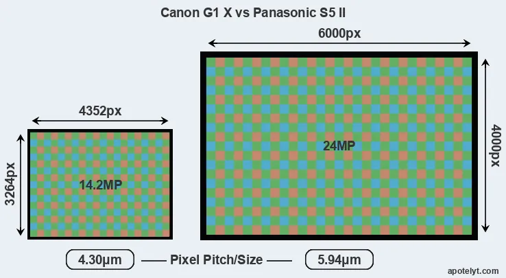 | Sensor Specs | Canon G1 X | Panasonic S5 II |