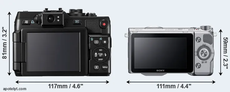 The above size and weight comparisons are to some extent incomplete and possibly misleading, as the G1X has a lens built in, whereas the NEX-5T is an interchangeable lens camera that requires a separate lens. Attaching the latter will add extra weight and bulk to the setup. You can compare the optics available for the NEX-5T and their specifications in the Sony E-Mount Lens Catalog.