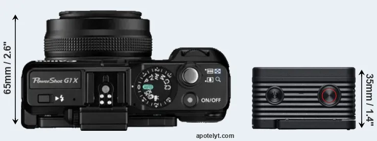 The side-by-side display below illustrates the physical size and weight of the Canon G1 X and the Sony RX0 II. The two cameras are presented according to their relative size. Three consecutive perspectives from the front, the top, and the back are available. All width, height and depth measures are rounded to the nearest millimeter.