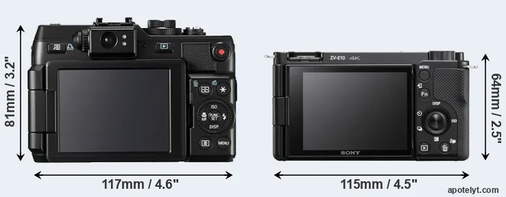 The above size and weight comparisons are to some extent incomplete and possibly misleading, as the G1X has a lens built in, whereas the ZV-E10 is an interchangeable lens camera that requires a separate lens. Attaching the latter will add extra weight and bulk to the setup. You can compare the optics available for the ZV-E10 and their specifications in the Sony E-Mount Lens Catalog.