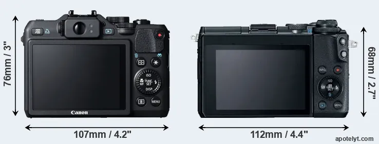 The above size and weight comparisons are to some extent incomplete and possibly misleading, as the G15 has a lens built in, whereas the M6 is an interchangeable lens camera that requires a separate lens. Attaching the latter will add extra weight and bulk to the setup.