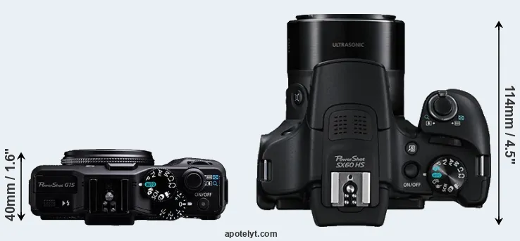 Technology-wise, the SX60 uses a more advanced image processing engine (DIGIC 6) than the G15 (DIGIC 5), with benefits for noise reduction, color accuracy, and processing speed.