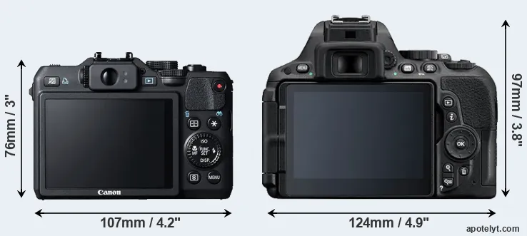 The above size and weight comparisons are to some extent incomplete and possibly misleading, as the G15 has a lens built in, whereas the D5500 is an interchangeable lens camera that requires a separate lens. Attaching the latter will add extra weight and bulk to the setup. You can compare the optics available for the D5500 and their specifications in the Nikon Lens Catalog.