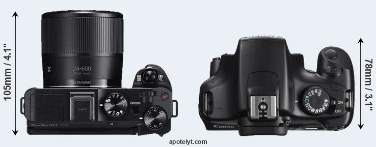 The above size and weight comparisons are to some extent incomplete and possibly misleading, as the G3X has a lens built in, whereas the T3 is an interchangeable lens camera that requires a separate lens. Attaching the latter will add extra weight and bulk to the setup. You can compare the optics available for the T3 and their specifications in the Canon EF Lens Catalog.
