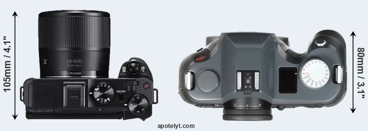The above size and weight comparisons are to some extent incomplete and possibly misleading, as the G3X has a lens built in, whereas the S-E Typ 006 is an interchangeable lens camera that requires a separate lens. Attaching the latter will add extra weight and bulk to the setup.
