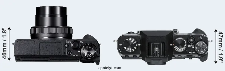 If the front view area (width x height) of the cameras is taken as an aggregate measure of their size, the Fujifilm X-T30 is considerably larger (45 percent) than the Canon G5 X Mark II. In this context, it is worth noting that neither the G5X Mark II nor the X-T30 are weather-sealed.