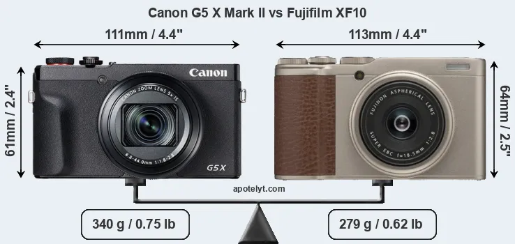 | Body Specs | Canon G5 X Mark II | Fujifilm XF10 |