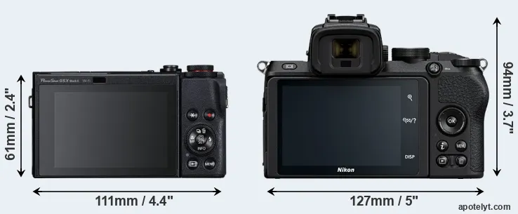 Shooting Specs Canon G5 X Mark II Nikon Z50