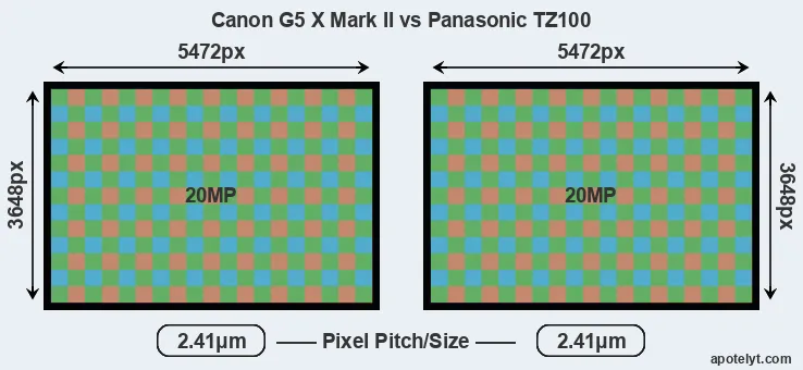 | Sensor Specs | Canon G5 X Mark II | Panasonic TZ100 |