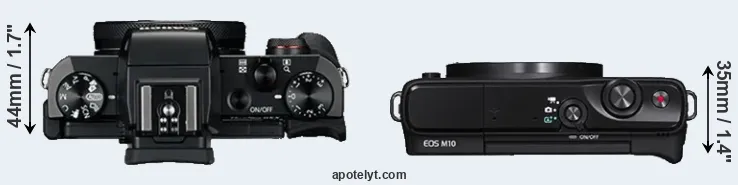 If the front view area (width x height) of the cameras is taken as an aggregate measure of their size, the Canon M10 is notably smaller (15 percent) than the Canon G5 X. In this context, it is worth noting that neither the G5X nor the M10 are weather-sealed.