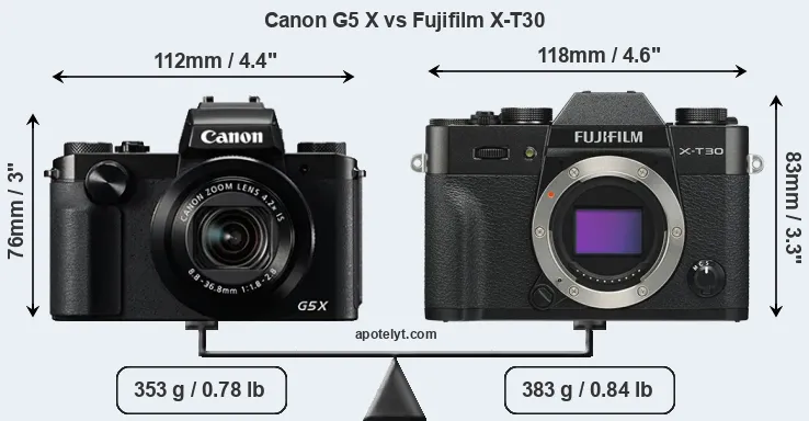 Specifications: Canon G5 X vs Fujifilm X-T30