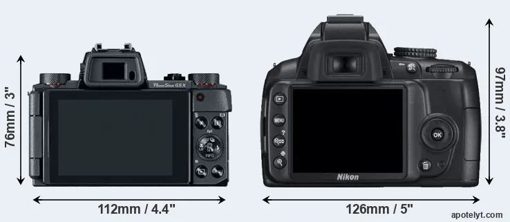 | Body Specs | Canon G5 X | Nikon D3000 |