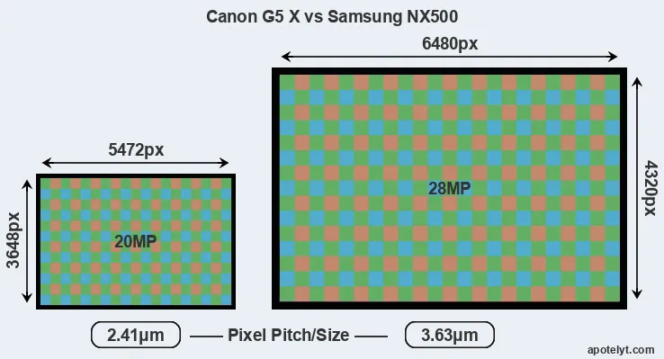 | Sensor Specs | Canon G5 X | Samsung NX500 |