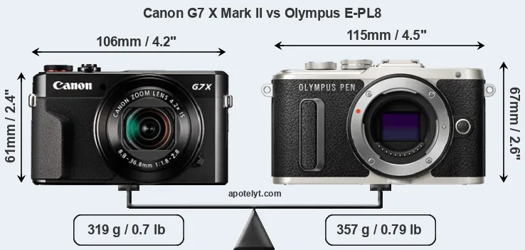 | Body Specs | Canon G7 X Mark II | Olympus E-PL8 |