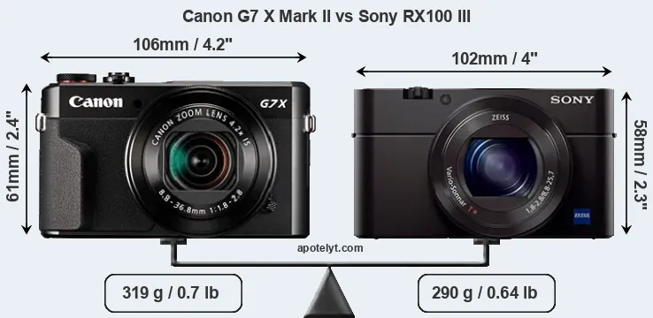 | Body Specs | Canon G7 X Mark II | Sony RX100 III |