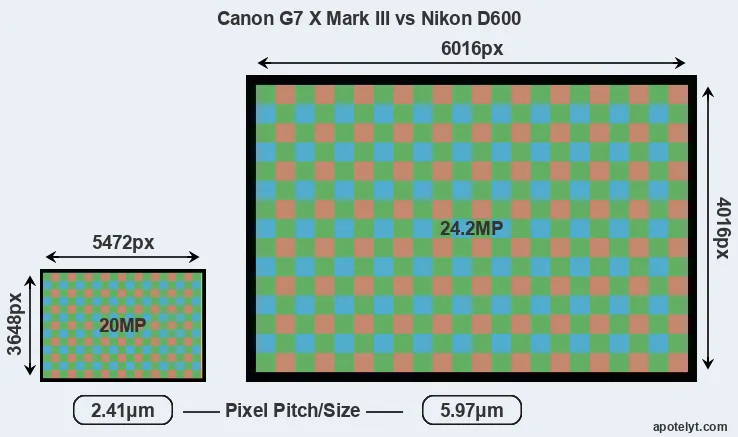 | Sensor Specs | Canon G7 X Mark III | Nikon D600 |