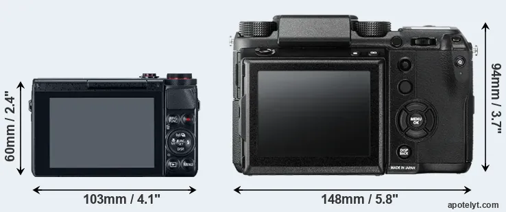 | Body Specs | Canon G7 X | Fujifilm GFX 50S |
