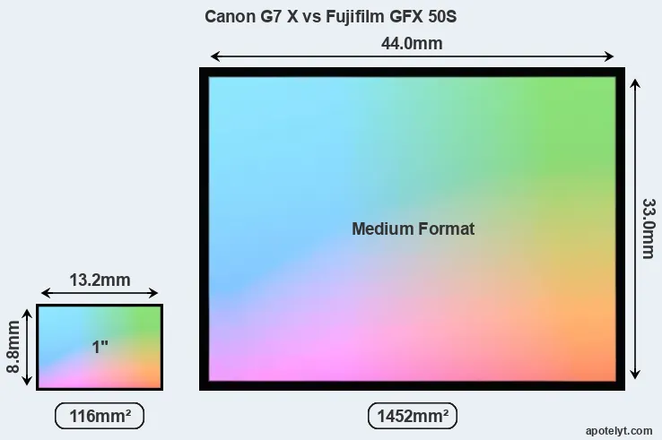 | Sensor Specs | Canon G7 X | Fujifilm GFX 50S |