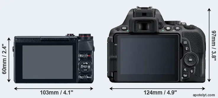 The above size and weight comparisons are to some extent incomplete and possibly misleading, as the G7X has a lens built in, whereas the D5500 is an interchangeable lens camera that requires a separate lens. Attaching the latter will add extra weight and bulk to the setup. You can compare the optics available for the D5500 and their specifications in the Nikon Lens Catalog.