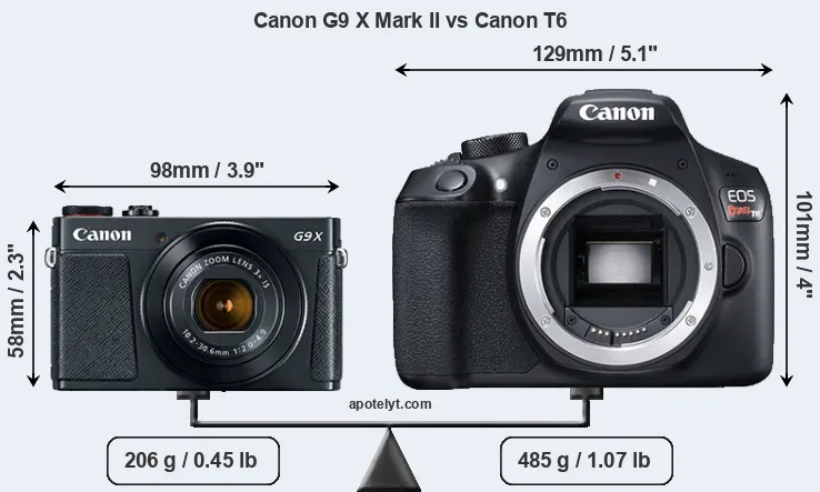 | Body Specs | Canon G9 X Mark II | Canon T6 |