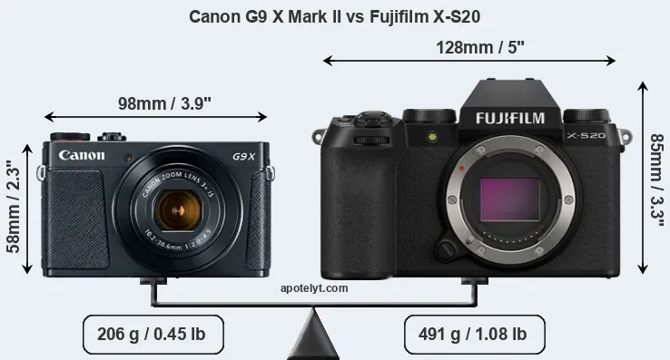 Specifications: Canon G9 X Mark II vs Fujifilm X-S20