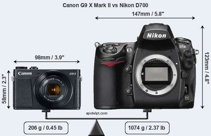 Size Canon G9 X Mark II vs Nikon D700