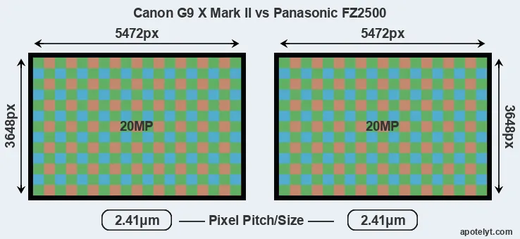 | Sensor Specs | Canon G9 X Mark II | Panasonic FZ2500 |