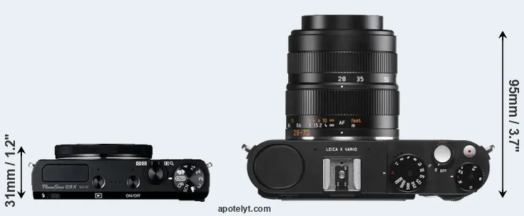 Going beyond this snapshot of core features and characteristics, what are the differences between the Canon PowerShot G9 X and the Leica X Vario (Typ 107)? Which one should you buy? Read on to find out how these two cameras compare with respect to their body size, their imaging sensors, their shooting features, their input-output connections, and their reception by expert reviewers.