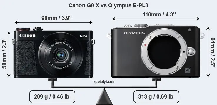 Size Canon G9 X vs Olympus E-PL3