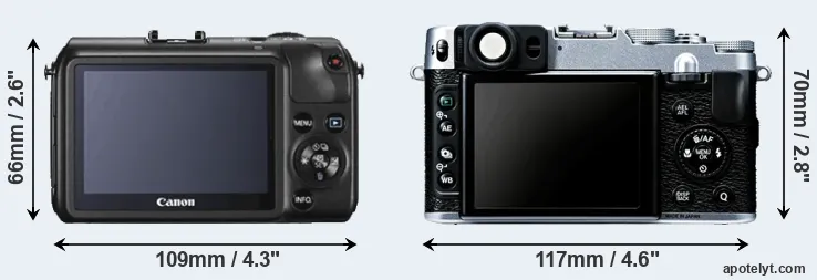 If the front view area (width x height) of the cameras is taken as an aggregate measure of their size, the Fujifilm X20 is notably larger (14 percent) than the Canon M. In this context, it is worth noting that neither the Canon M nor the X20 are weather-sealed.