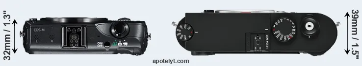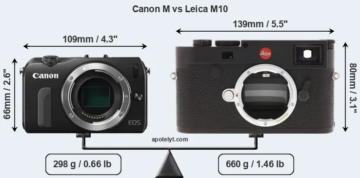 Going beyond this snapshot of core features and characteristics, what are the differences between the Canon EOS M and the Leica M10 (Typ 3656)? Which one should you buy? Read on to find out how these two cameras compare with respect to their body size, their imaging sensors, their shooting features, their input-output connections, and their reception by expert reviewers.