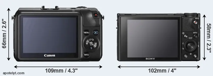 Going beyond this snapshot of core features and characteristics, what are the differences between the Canon EOS M and the Sony Cyber-shot DSC-RX100 VII? Which one should you buy? Read on to find out how these two cameras compare with respect to their body size, their imaging sensors, their shooting features, their input-output connections, and their reception by expert reviewers.