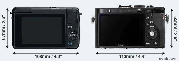 If the front view area (width x height) of the cameras is taken as an aggregate measure of their size, the Sony RX1R is somewhat larger (2 percent) than the Canon M10. In this context, it is worth noting that neither the M10 nor the RX1R are weather-sealed.
