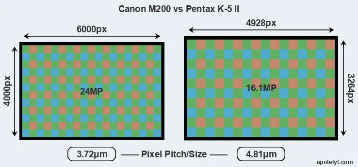 | Sensor Specs | Canon M200 | Pentax K-5 II |