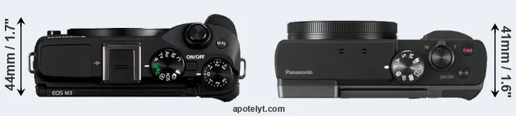 If the front view area (width x height) of the cameras is taken as an aggregate measure of their size, the Canon M3 and the Panasonic ZS70 are of equal size. In this context, it is worth noting that neither the M3 nor the ZS70 are weather-sealed.