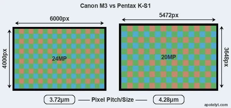 | Sensor Specs | Canon M3 | Pentax K-S1 |