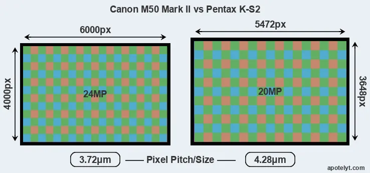 | Sensor Specs | Canon M50 Mark II | Pentax K-S2 |