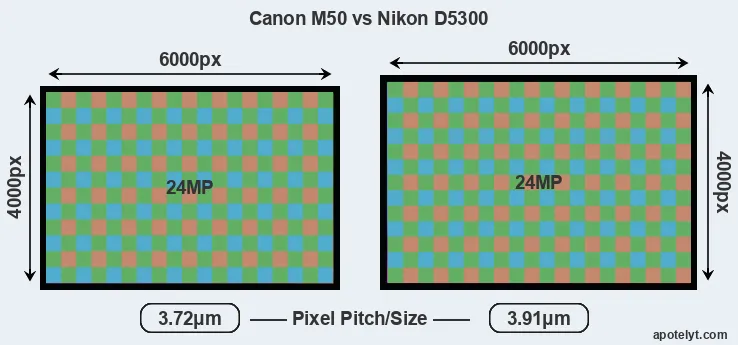| Sensor Specs | Canon M50 | Nikon D5300 |