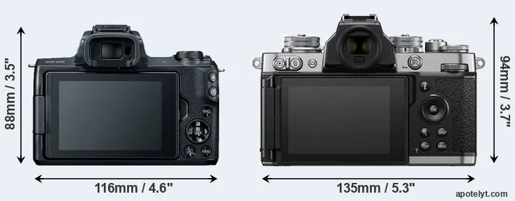 The Canon EOS M50 and the Nikon Z fc are two digital cameras that were officially introduced, respectively, in February 2018 and June 2021. Both the M50 and the Z fc are mirrorless interchangeable lens cameras that are equipped with an APS-C sensor. The Canon has a resolution of 24 megapixels, whereas the Nikon provides 20.7 MP.