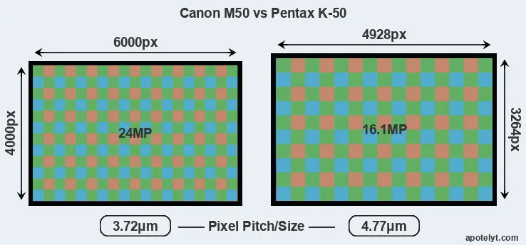 | Sensor Specs | Canon M50 | Pentax K-50 |