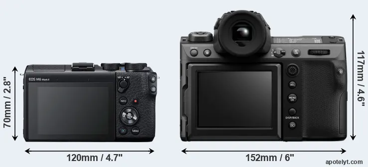 | Body Specs | Canon M6 Mark II | Fujifilm GFX 100 II |