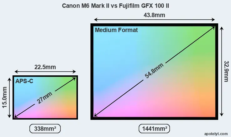 | Sensor Specs | Canon M6 Mark II | Fujifilm GFX 100 II |