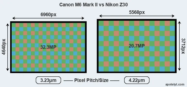 | Sensor Specs | Canon M6 Mark II | Nikon Z30 |