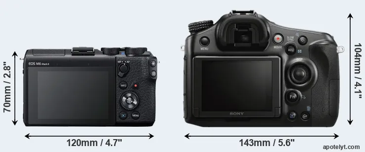Going beyond this snapshot of core features and characteristics, what are the differences between the Canon EOS M6 Mark II and the Sony Alpha SLT-A68? Which one should you buy? Read on to find out how these two cameras compare with respect to their body size, their imaging sensors, their shooting features, their input-output connections, and their reception by expert reviewers.