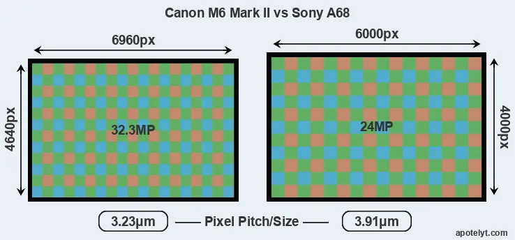 | Sensor Specs | Canon M6 Mark II | Sony A68 |