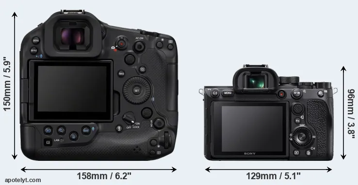 If the front view area (width x height) of the cameras is taken as an aggregate measure of their size, the Sony A7R IV is considerably smaller (48 percent) than the Canon R1. Moreover, the A7R IV is substantially lighter (40 percent) than the R1. In this context, it is worth noting that both cameras are splash and dust-proof and can, hence, be used in inclement weather conditions or harsh environments.