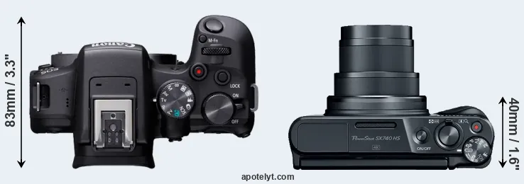 The above size and weight comparisons are to some extent incomplete and possibly misleading, as the SX740 has a lens built in, whereas the R10 is an interchangeable lens camera that requires a separate lens. Attaching the latter will add extra weight and bulk to the setup.