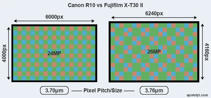 | Sensor Specs | Canon R10 | Fujifilm X-T30 II |