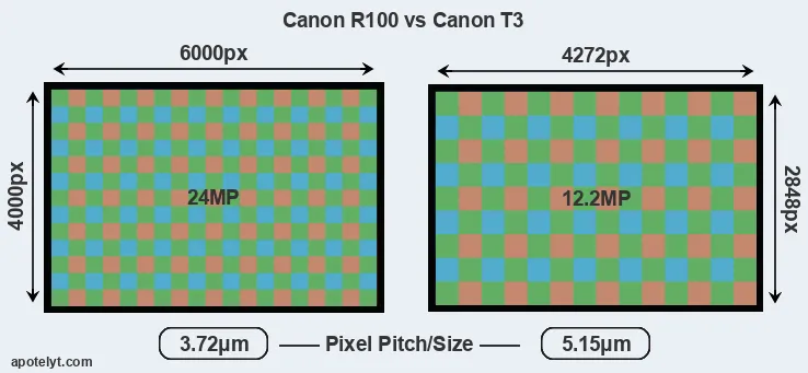 | Sensor Specs | Canon R100 | Canon T3 |