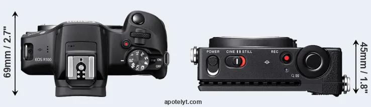 | 1. | Canon R100 | 116 mm | 86 mm | 69 mm | 356 g | 400 | n | May 2023 | US$ 479 | amazon.com | |